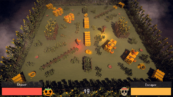 One player starts as the chaser, and the other the runner. The game switches at the half way point and the roles reverse! You will get to experience the fear of running for your life, and the thrill of chasing down your prey all in 1 minute.