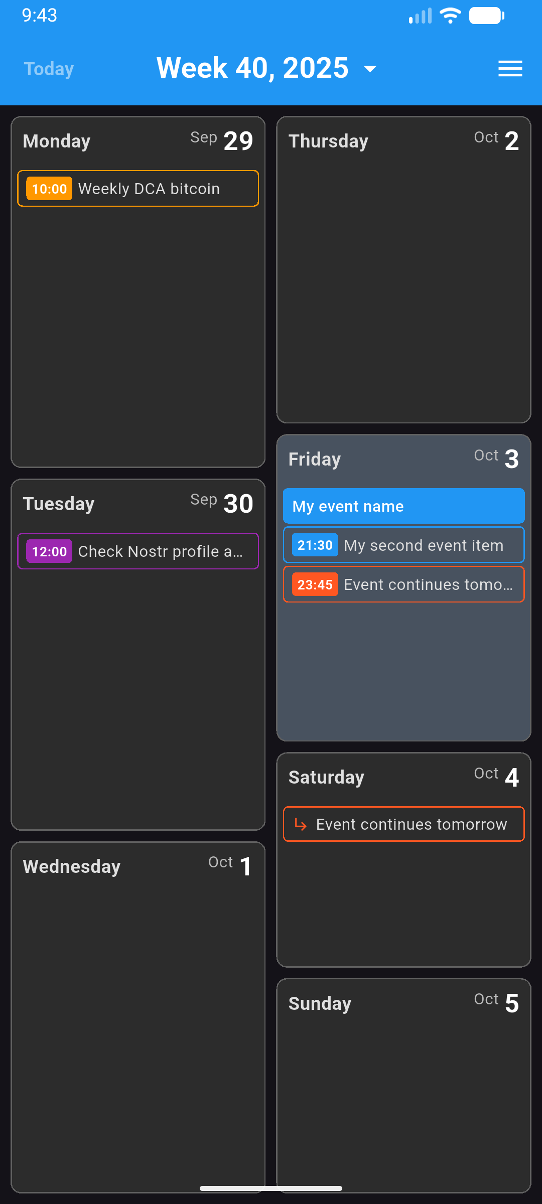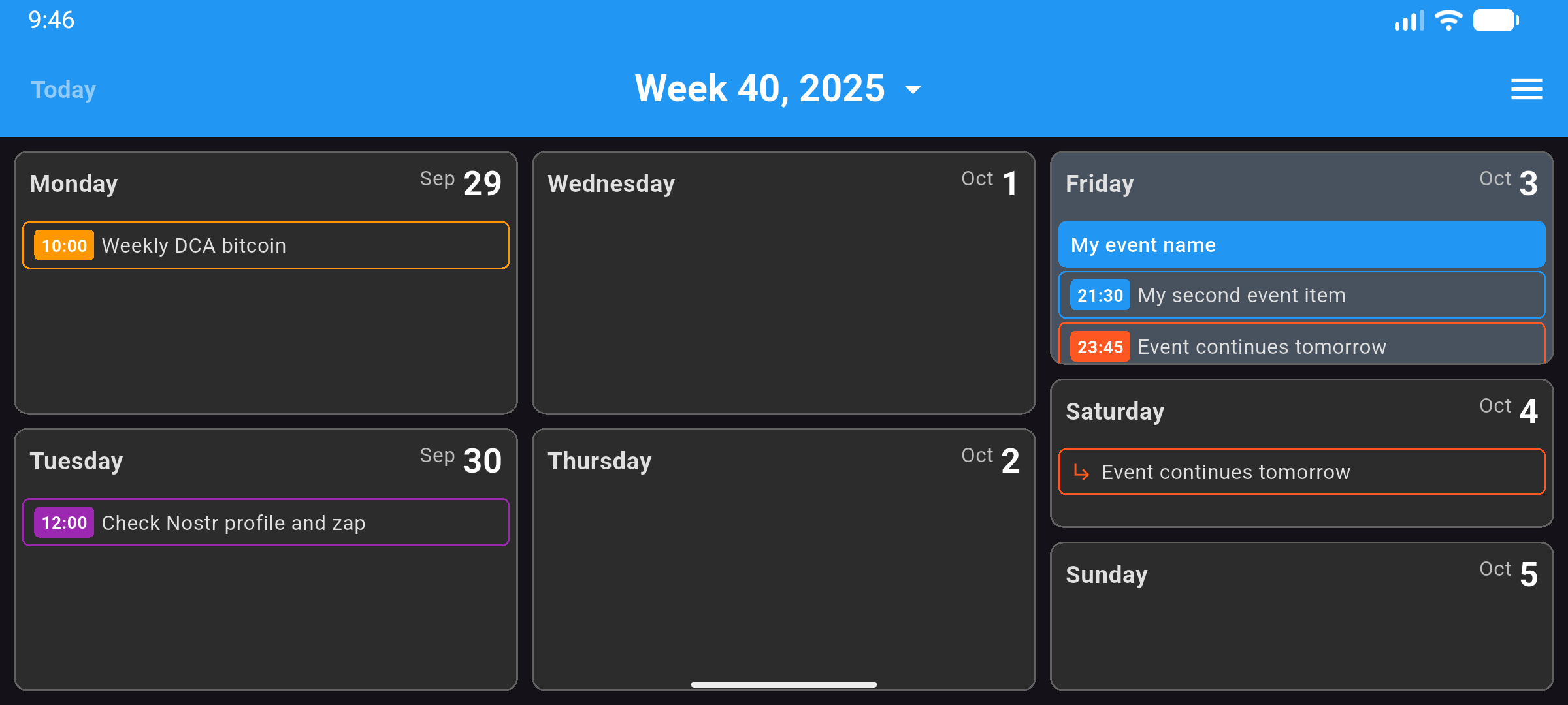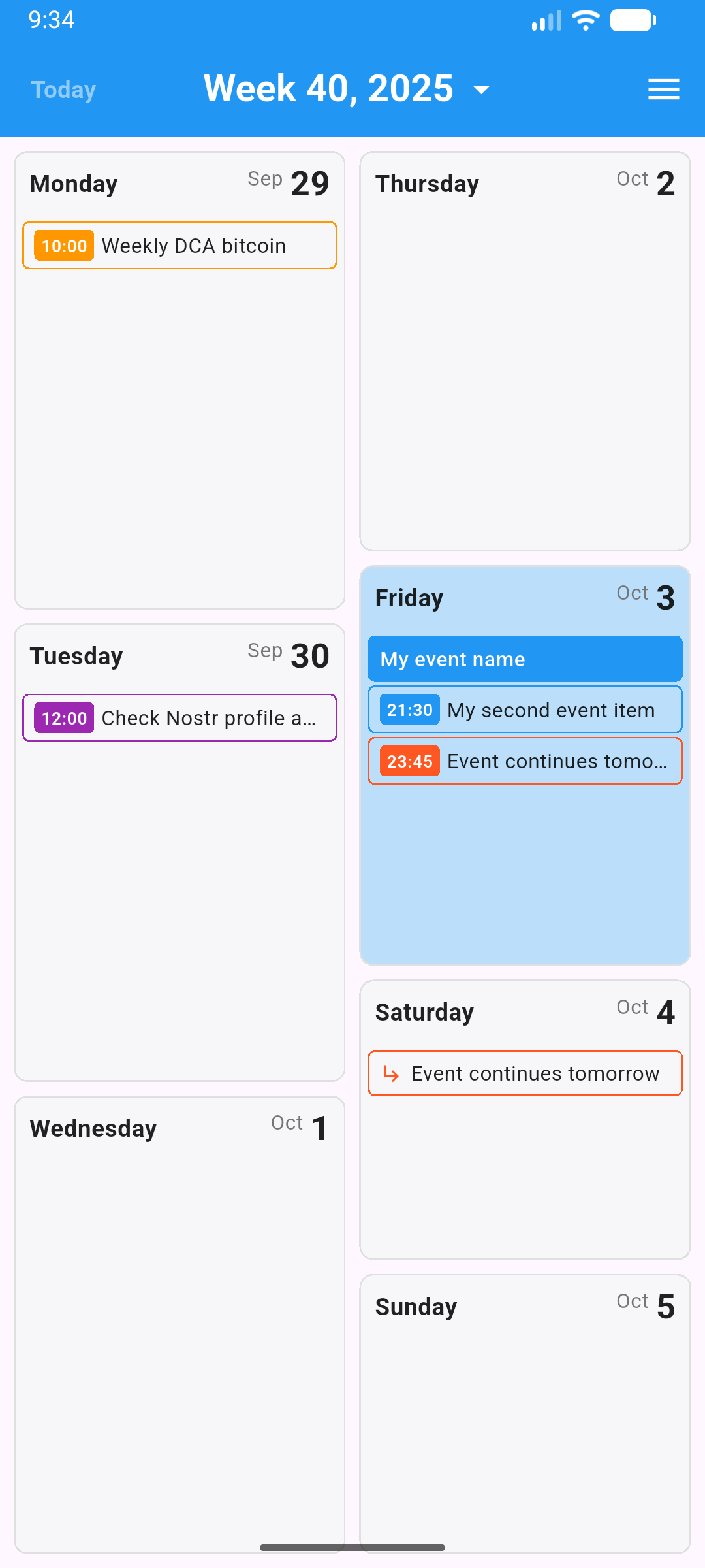 A calendar Android app showing the week view. It uses CalDAV via DAVx⁵.