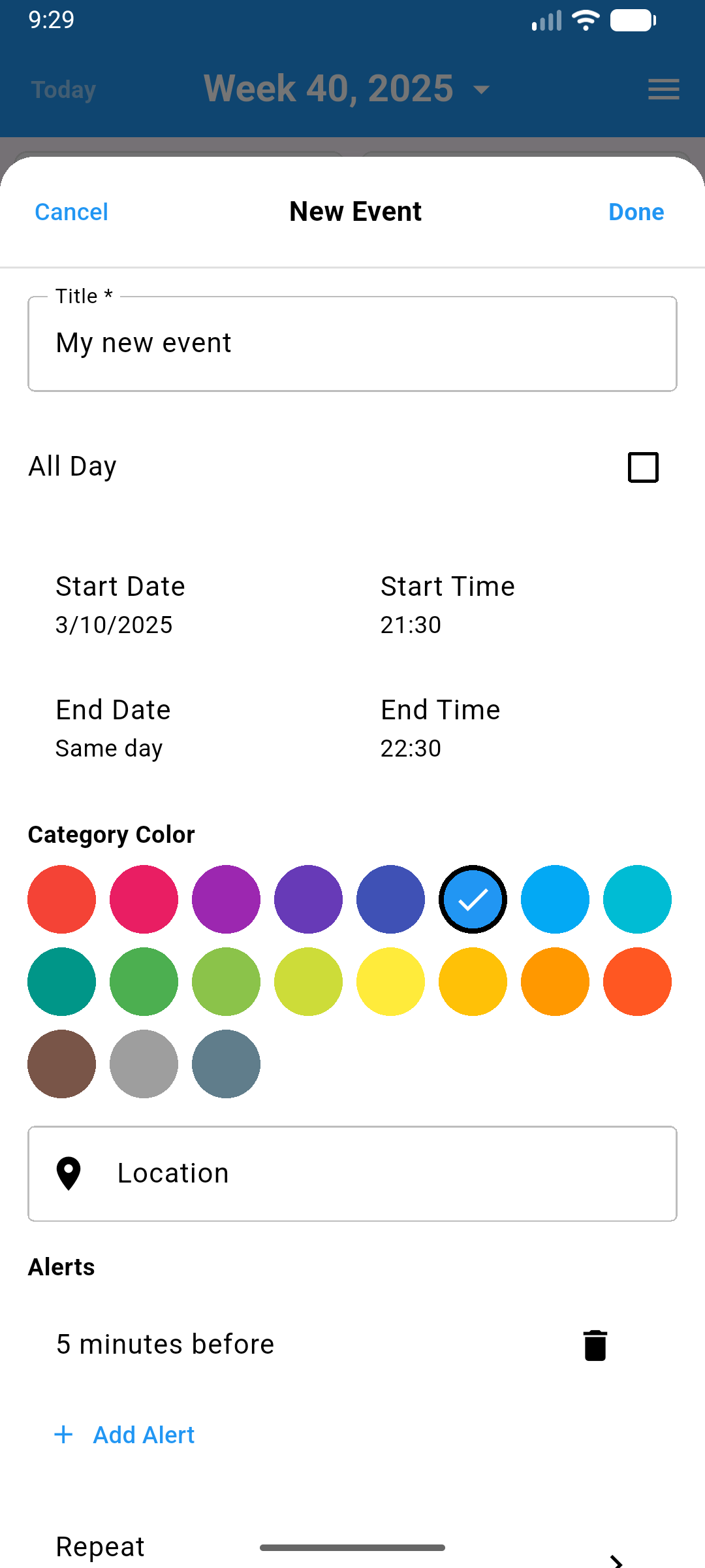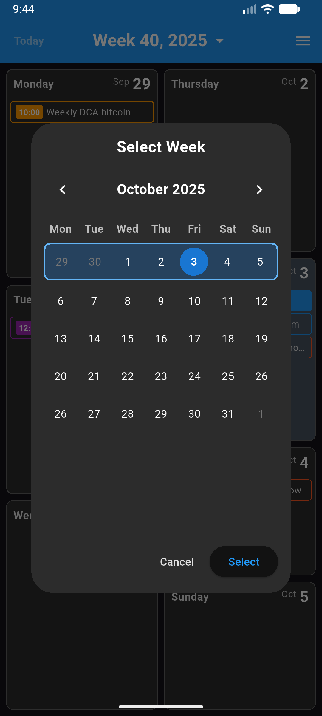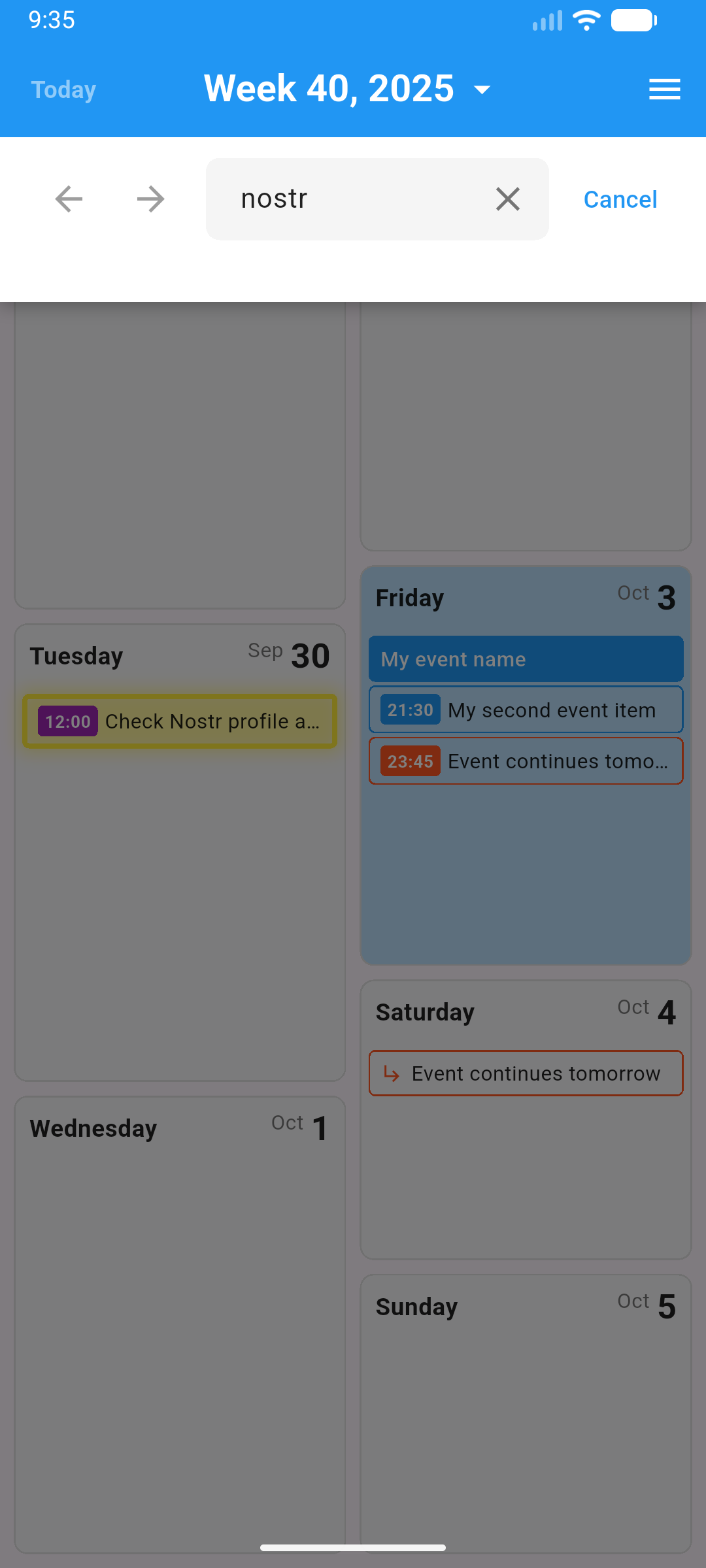A calendar Android app showing the week view. It uses CalDAV via DAVx⁵.
