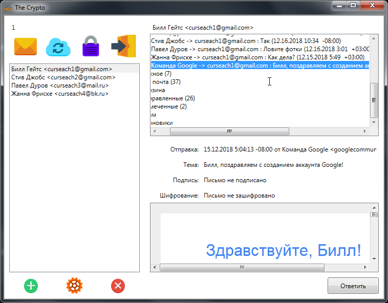 Почтовый агент со сквозным шифрованием (УЧЕБНЫЙ ПРОЕКТ)