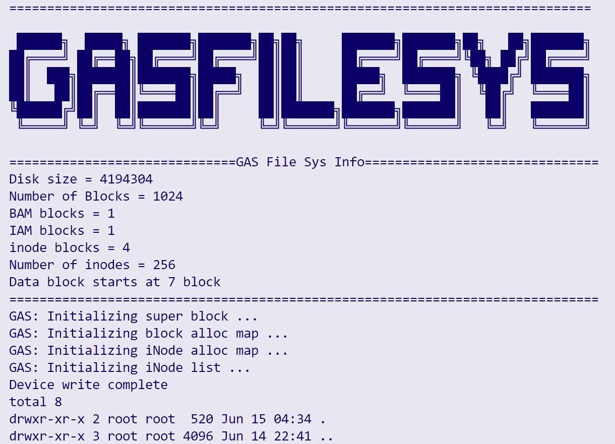 Also this maker will print some basic information of the file system running on this virtual disk.