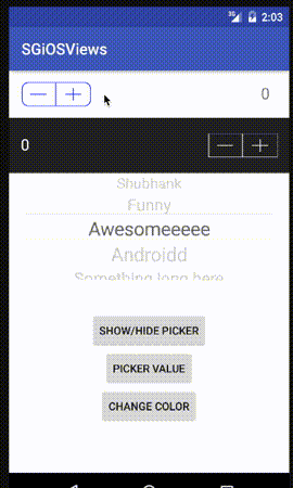 compile 'com.github.shubhank101.sgiosviews:sgiosviews-lib:1.0.0'A port of iOS UIStepper, can be used a simple number picker