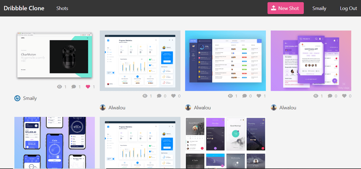 My attempt to mimic Dribbble using Rails (as BackEnd) and Bulma (as FrontEnd) frameworks. You can add/edit/delete Shots , Comment on them And Like them .