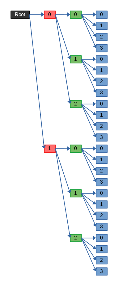 PW:template(2, 4)This creates 2 layers on the root layer. Then it creates 3 layers on each of those 2 layers for a total of 6 new layers. Then on each of those 6 layers, 4 new layers are created for a total of 24 new layers.