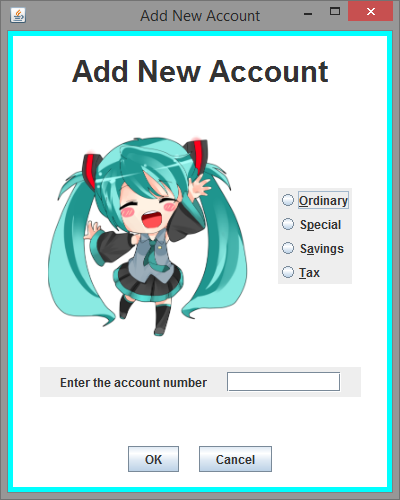 Feita em Java Swing e AWT com auxílio da ferramenta Eclipse WindowBuilder 1.8.0. A interface está em inglês.