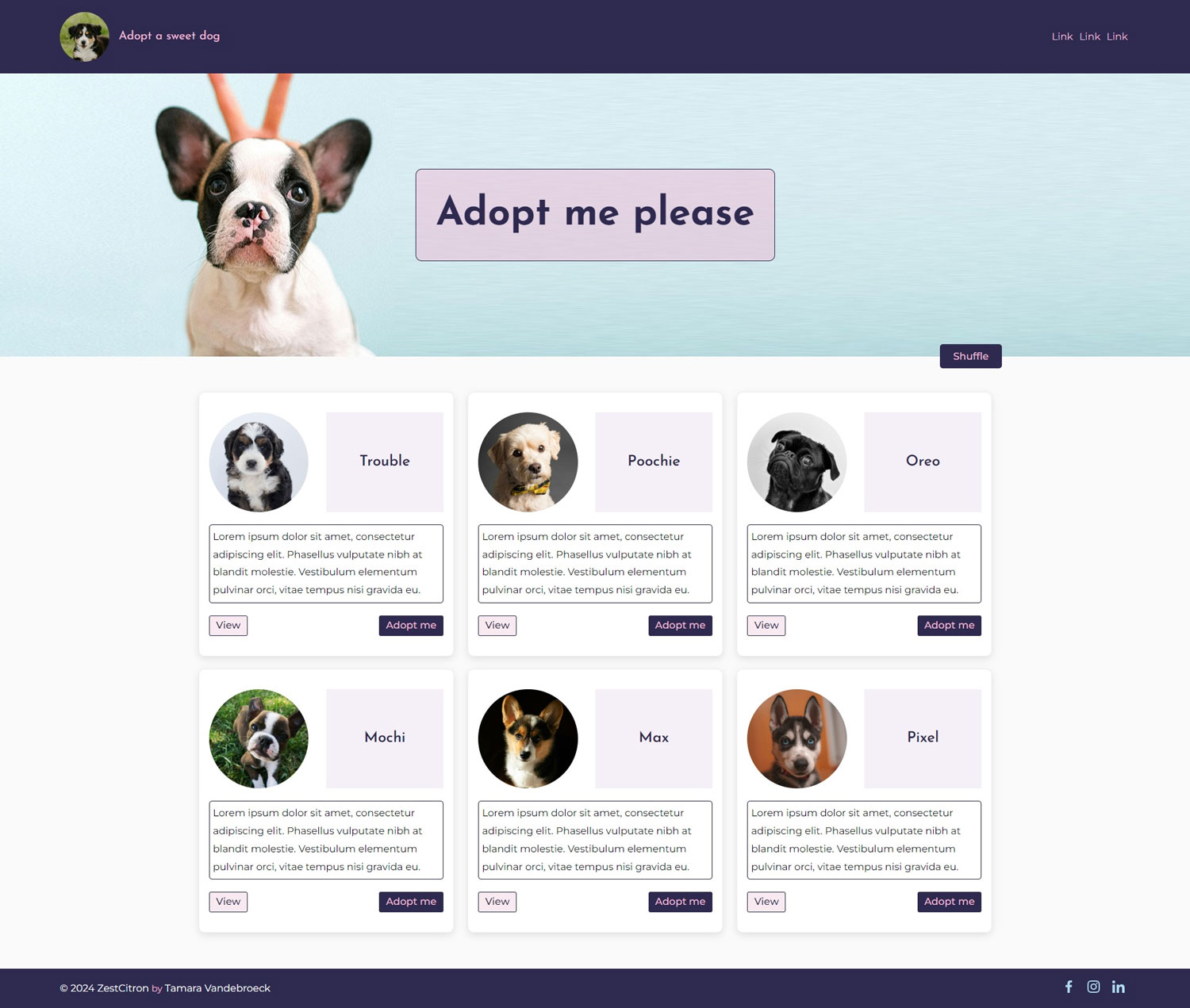 A small amount of JavaScript with a "shuffle" button to rearrange the different cards.