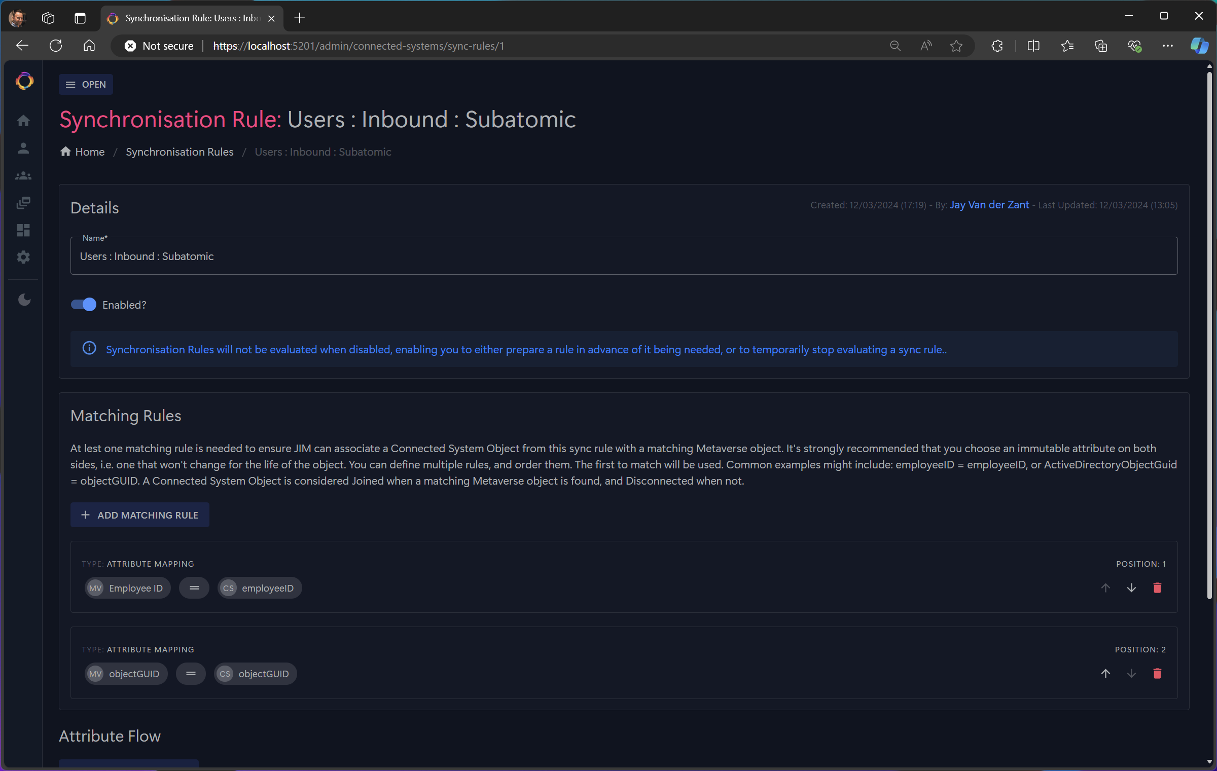 - Sync Rule configuration with attribute flow mapping