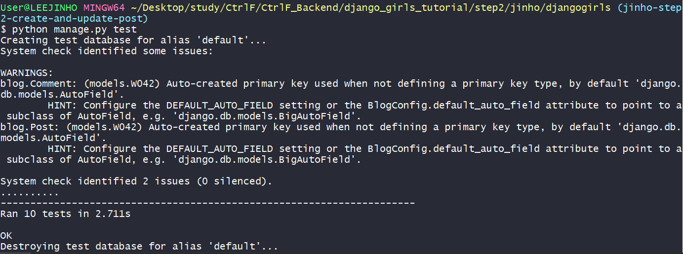 post_editmethod를 참고하여 작성form.is_valid()가 false일때 response 추가테스트