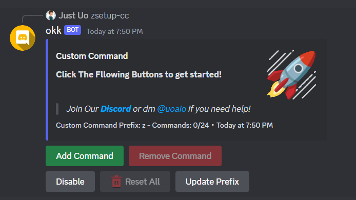 Discord.js v14 Custom Commands An advance custom command builder discord bot made by Uo 💖 Support Patreon (Donate) ΛLL IN ONΞ™ | Development </> (Discord Server) Leave Star ⭐🌟⭐ 💝 Profile