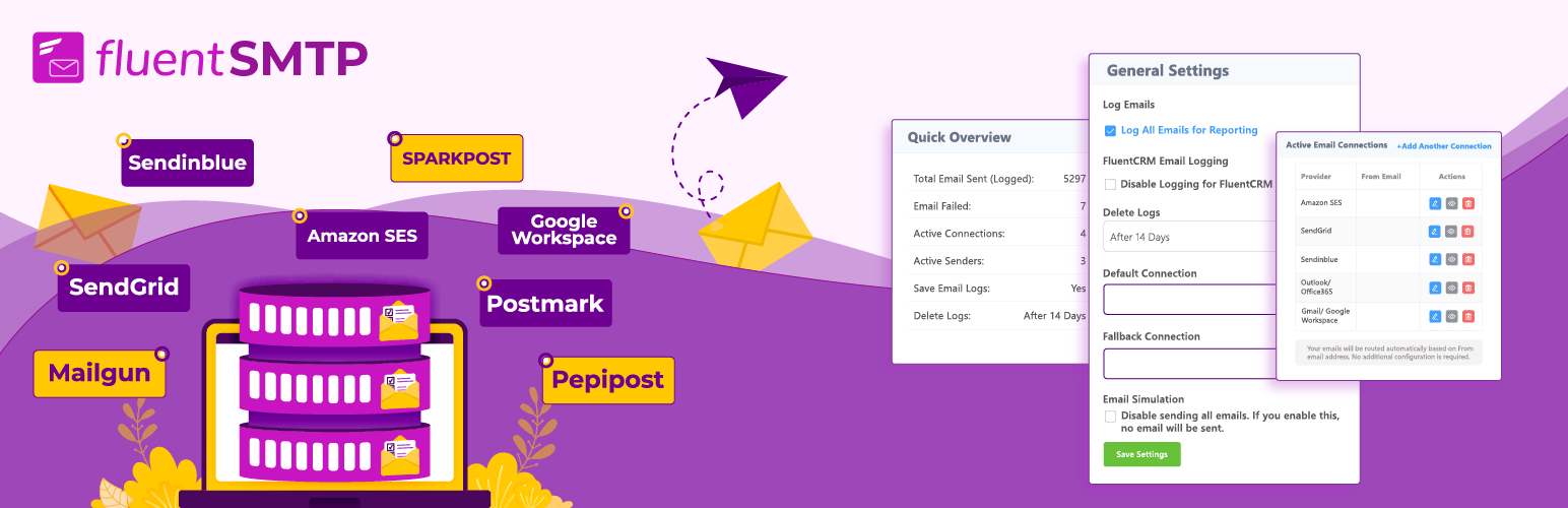 Are you having problems with your WordPress emails not sending? This is the plugin that will solve your email deliverability problem. FluentSMTP is the ultimate WP Mail Plugin that connects with your Email Service Provider natively and makes sure your emails are delivered 💯.