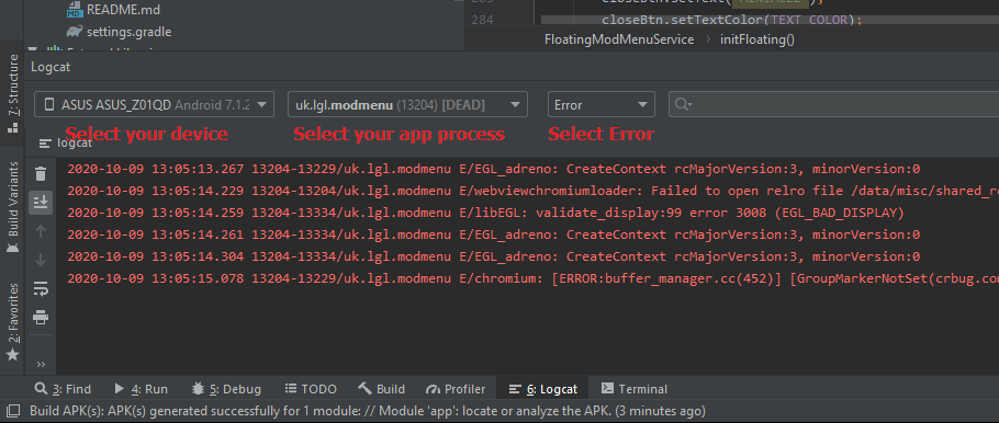 Or you can save logcat to file via mod menu settings