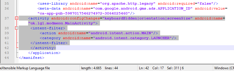 Open the game's AndroidManifest.xml