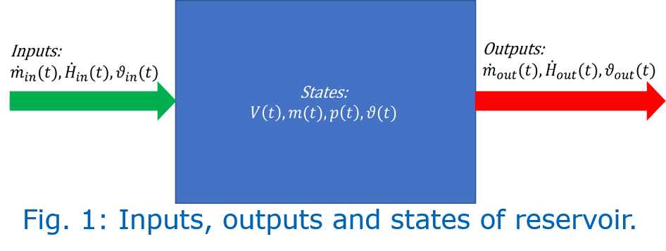 The reservoir model describes mass and enthalpy flow as well as temperature changes using ordinary differential equations.