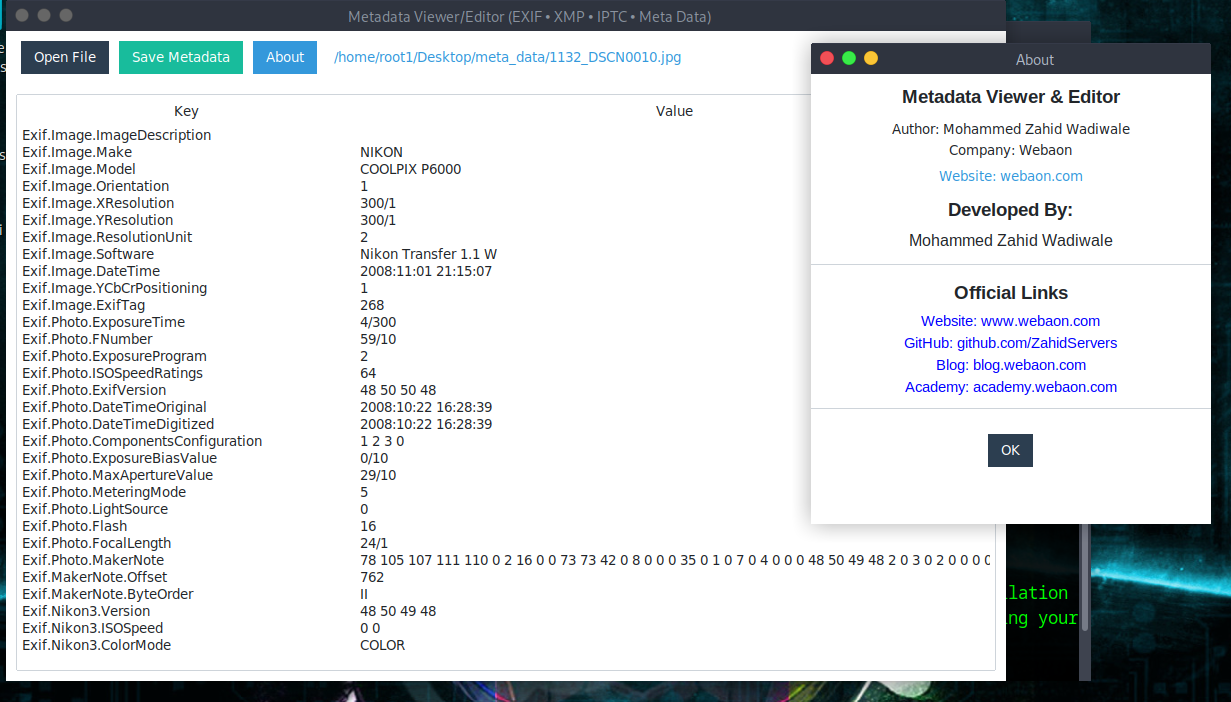 - Read and Edit EXIF, IPTC, XMP and other metadata from images and videos. (Right Now Windows doesnt support Edit mode, also doesnt Supports IPTC and XMP.)