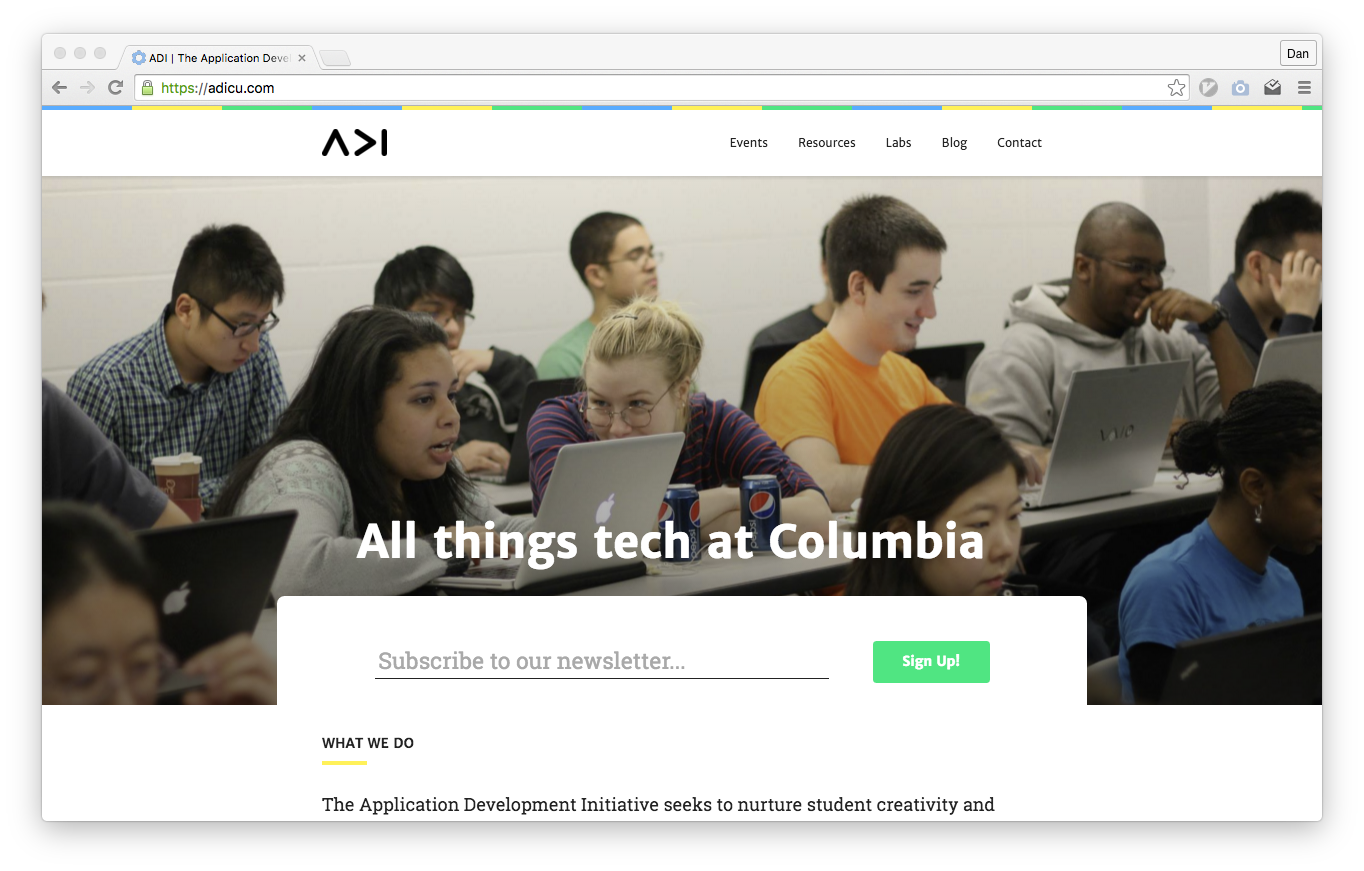ADI is the tech club at Columbia. The ADI website is built on Eventum, a content management system for an event-driven blog that syncs with Google Calendar.