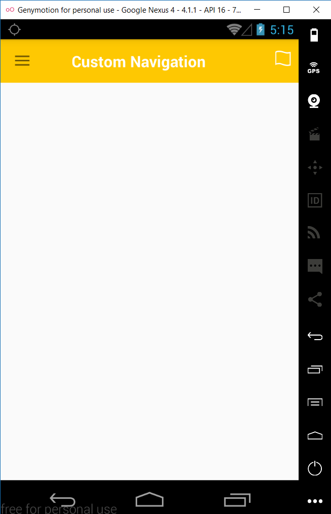 Android-Custom-Navigation if you don't like android default navigation system(option menu) or looking for add two navigation(left and right) then this is right place for you License This project is licensed under the MIT License - see the License File for details