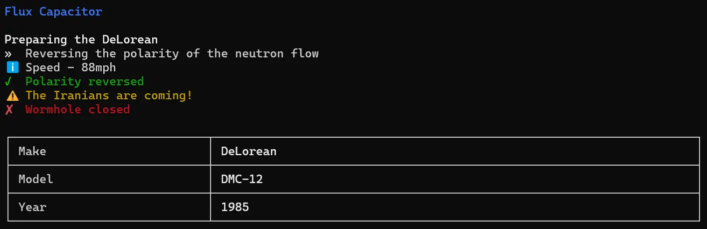 Narrator.title('Flux Capacitor');Log a heading for any subprocess/activity: