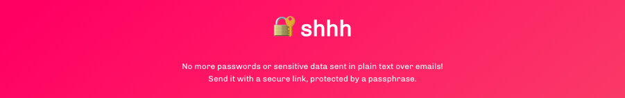 A unique link is generated by Shhh that the sender can share with the receiver in an email, alongside the temporary passphrase he created in order to reveal the secret.