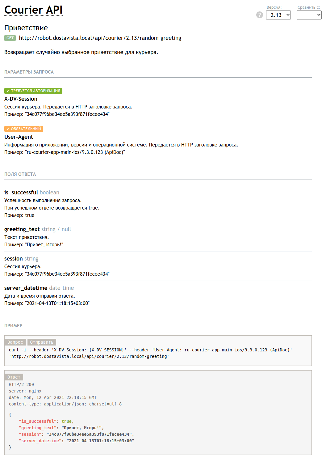 /** @see CourierApiController::randomGreetingAction() */