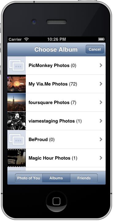 FBAlbumPicker is build using Modern ARC based Objective-C AFNetworking is used for the networking Every attempt has been made to ensure compatibility with older versions of iOS