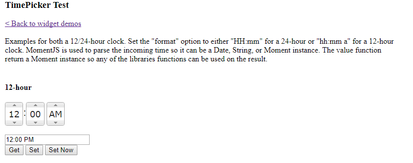 The timepicker returns a PM value when set to 12:00 AM using moment and 12-hour representation. Please see screen grab from demo website.