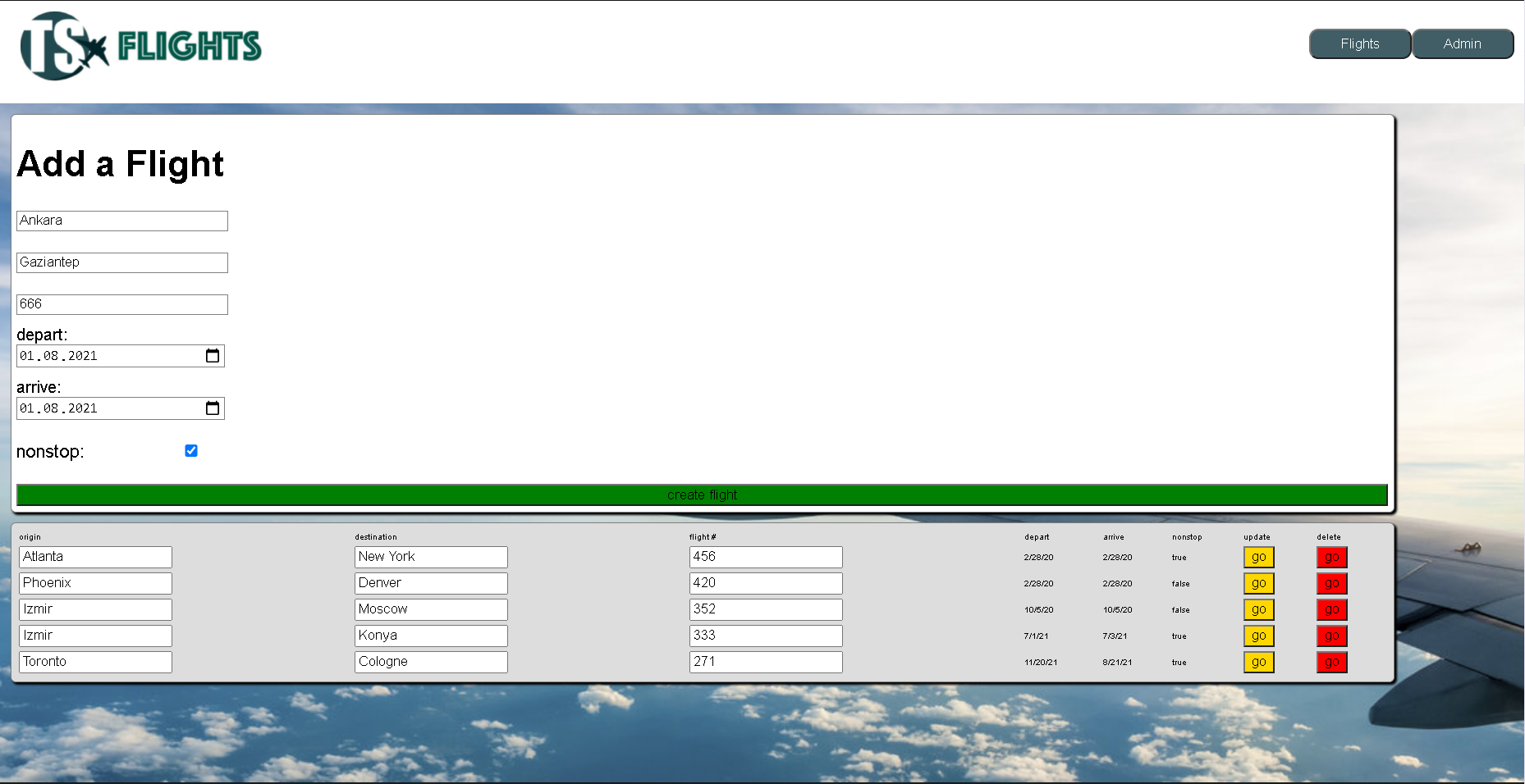 Full-Stack TypeScript application that used AngularJS for frontend, NestJS for backend and PostgreSQL database where users can search flights and make CRUD operations.