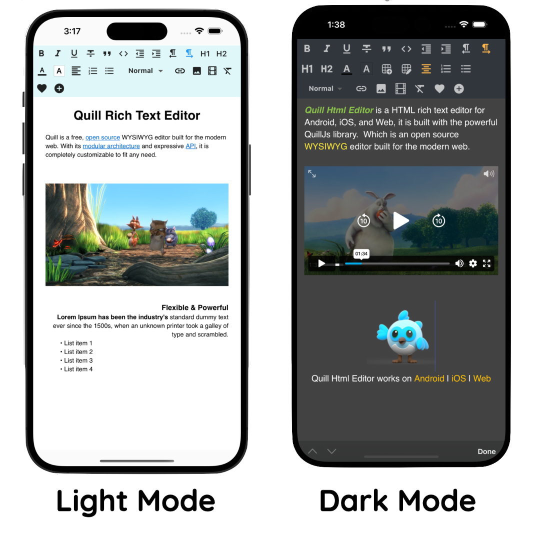 Quill Html Editor is a powerful HTML rich text editor designed for Android, iOS, and Web platforms. It leverages the capabilities of the QuillJs library, an open-source WYSIWYG editor, to provide a feature-rich editing experience for modern web applications.