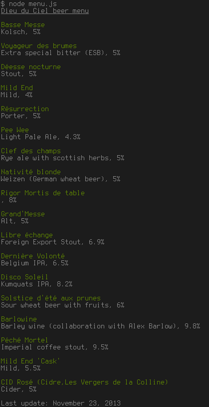 A simple command-line utility to query the Dieu du Ciel! brewery current beer menu.