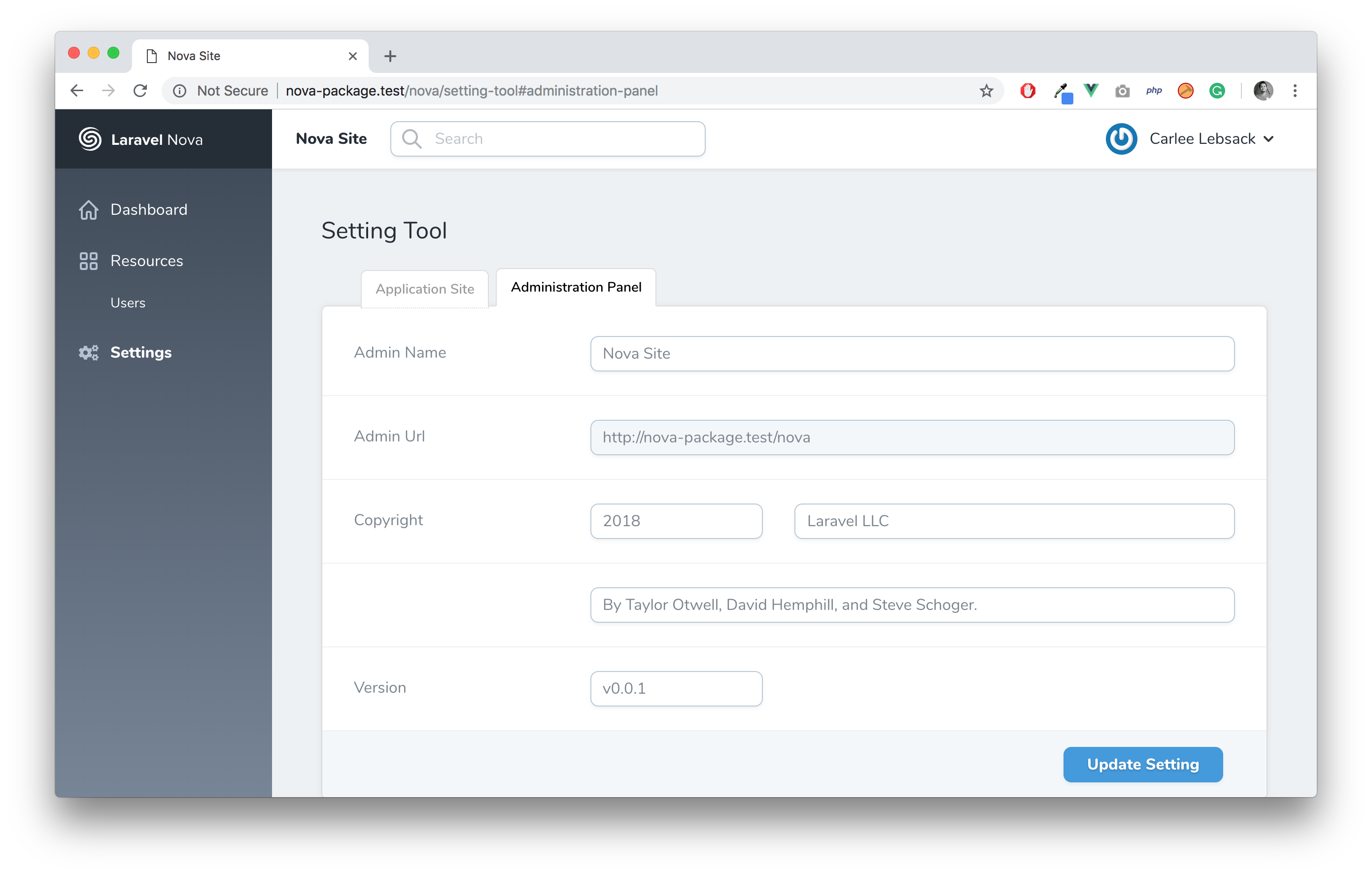 php artisan vendor:publish --tag=settingsNext up, you must register the tool with Nova. This is typically done in the tools method of the NovaServiceProvider.
