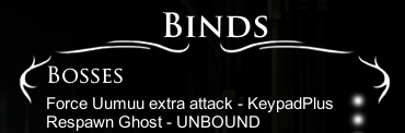 - Guaranteed Uumuu extra attack binding, can be bound on the Bosses binds panel, and toggled using that binding. Always works on first cycle, almost always works on further cycles.