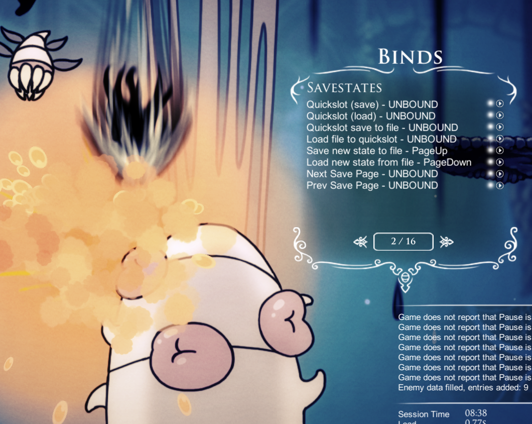 DebugMod.GlobalSettings-1.2.2.1.json. See see readme for details for details. - Savestates should save permanent scene states without leaving and re-entering the scene (ie. gates, levers, chests, broken walls, etc).
