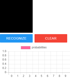 Now you can draw the digit on the black canvas and click the 'recognize' button to see the prediction.