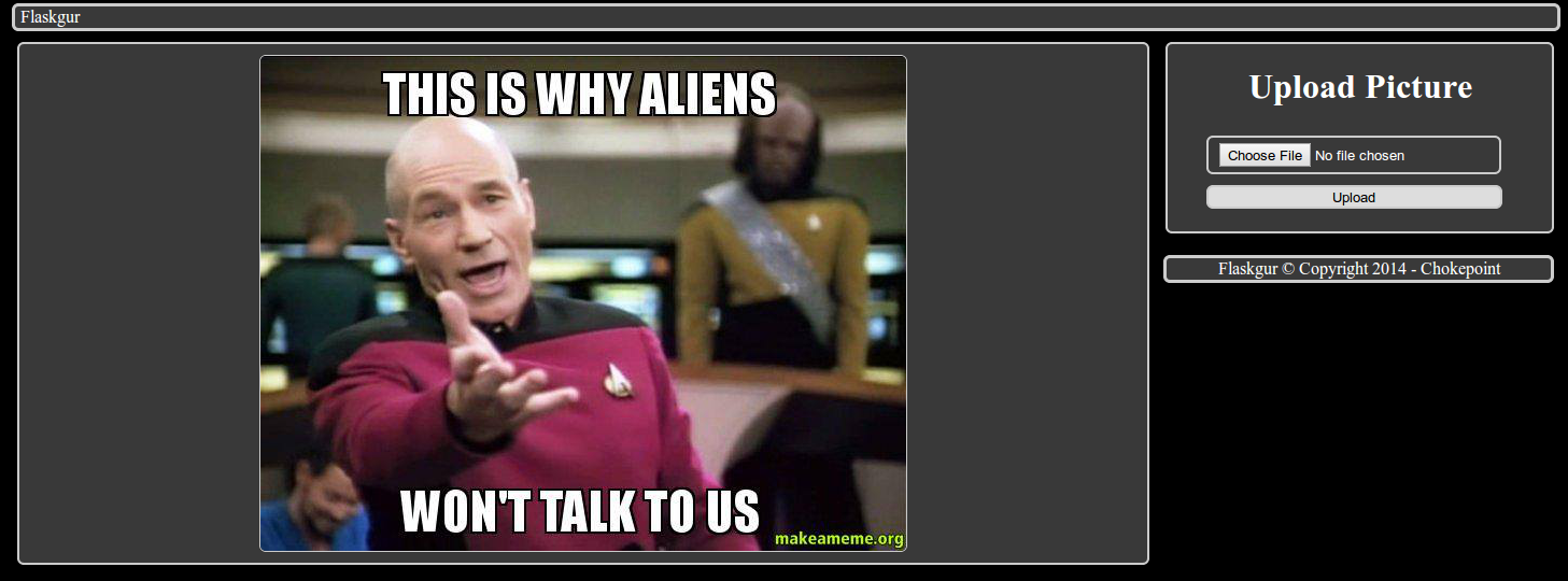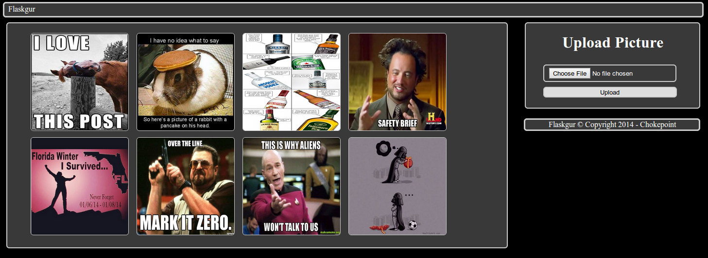 flaskgur Simple image hosting site written with Flask and Python Screenshot www.chokepoint.net Installation mkvirtualenv flaskgur pip install .