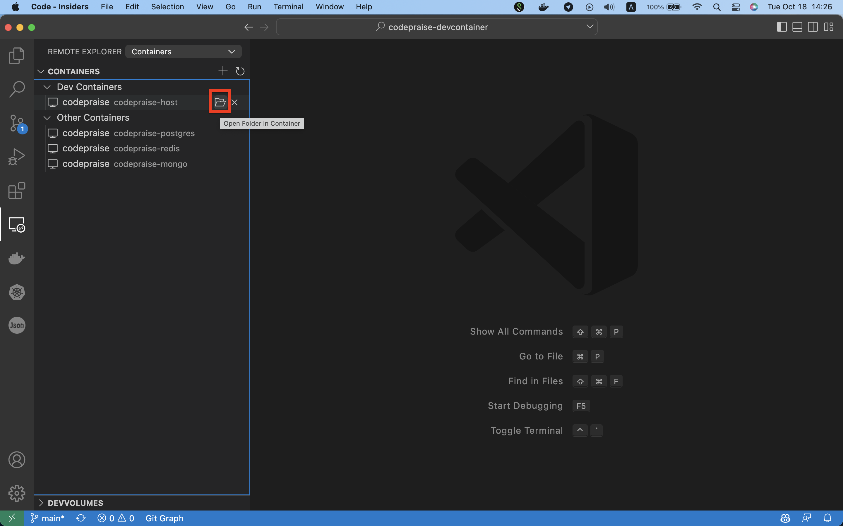 The host container is the one we will connect, it will show a folder icon when you move the mouse pointer to it. Click the folder icon to connect to the host container.