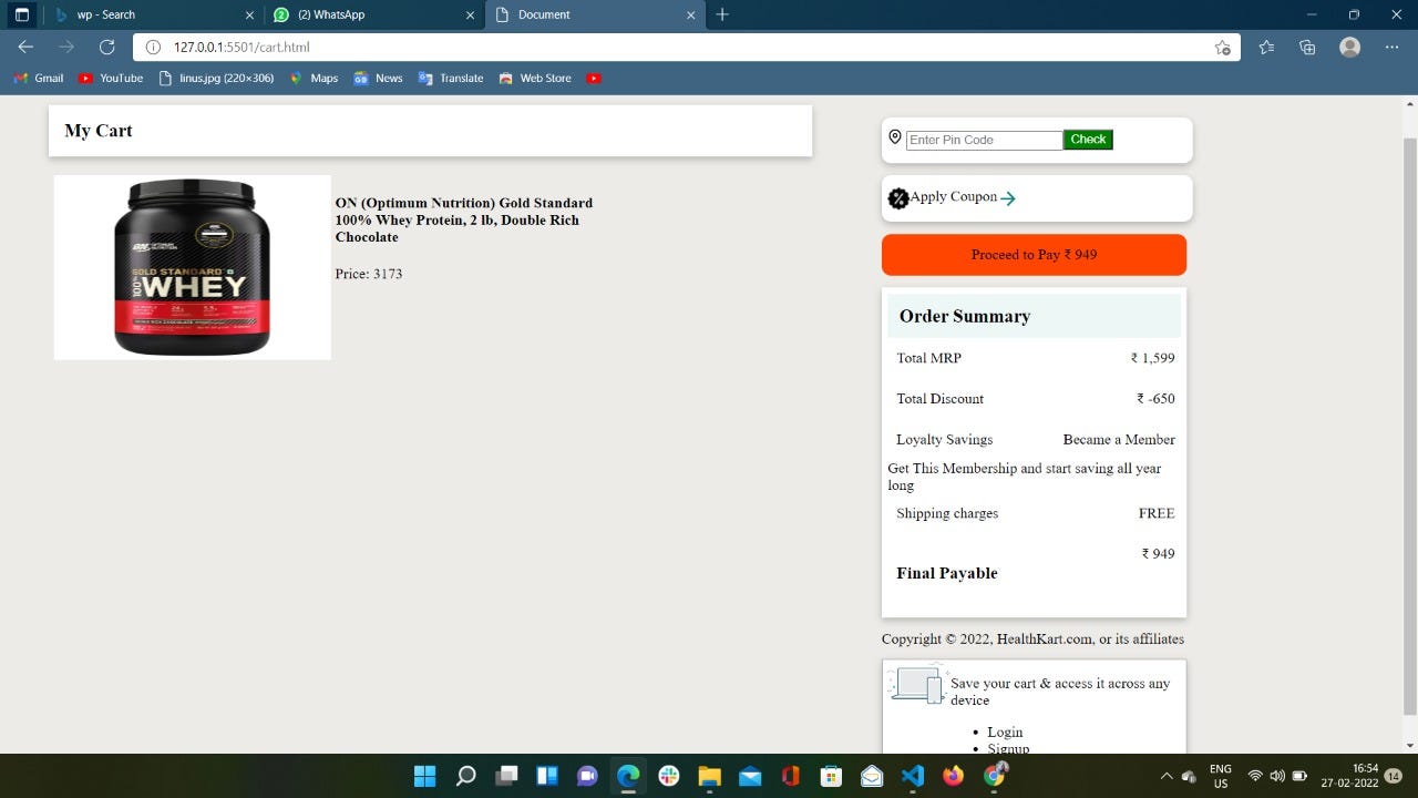 HealthKart is your ideal platform for all nutrition, health, and fitness products. We serve millions of customers through our dedicated online and offline. We can filter the producta by costs, Price Range etc.We can add the items in carts then buy the products by checking out.