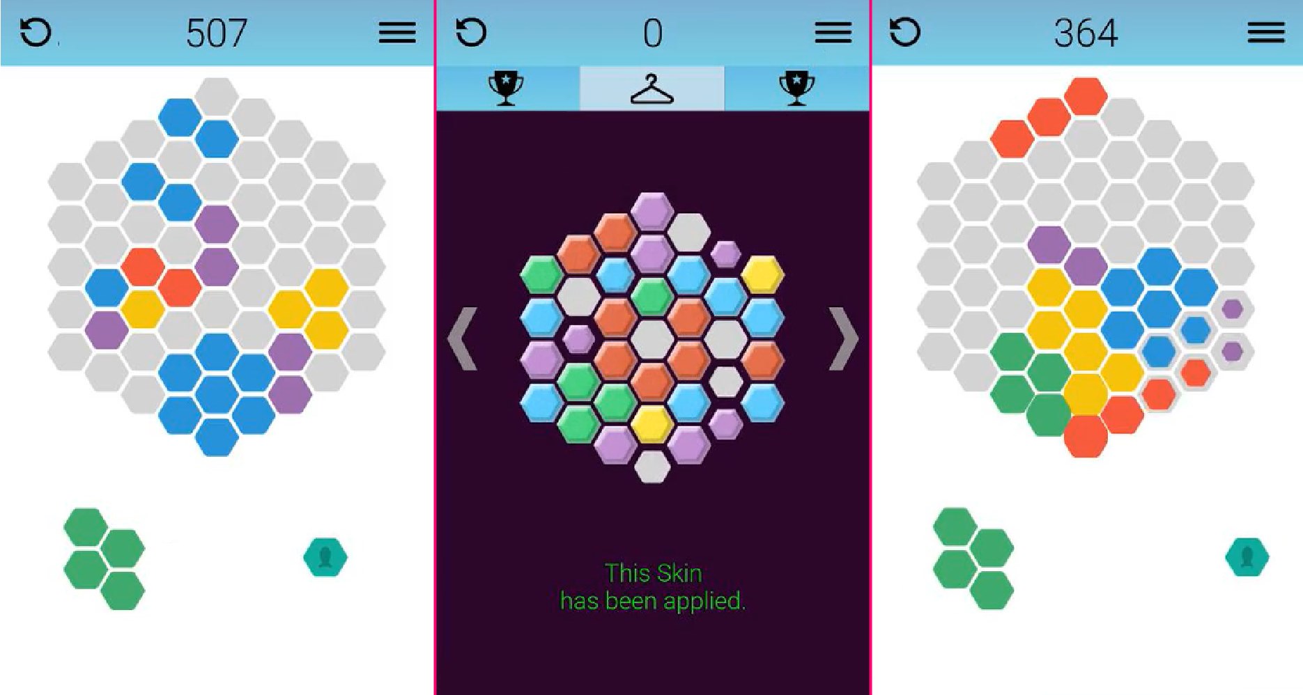 Since the game is endless it makes sense to be able to return to where you previously left off. HexR uses basic file reading and writing to save the state of the board along with any progress you might have with trophies (ones you unlocked and/or currently are completing). This gives the user incentive to come back and try to beat their highscores and continue unlocking content for the game.