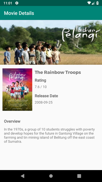 Project aplikasi android dengan menggunakan viewModel, RecyclerView (cardview) dan data API. Data API yang digunakan adalah TMDB API (https://api.themoviedb.org).