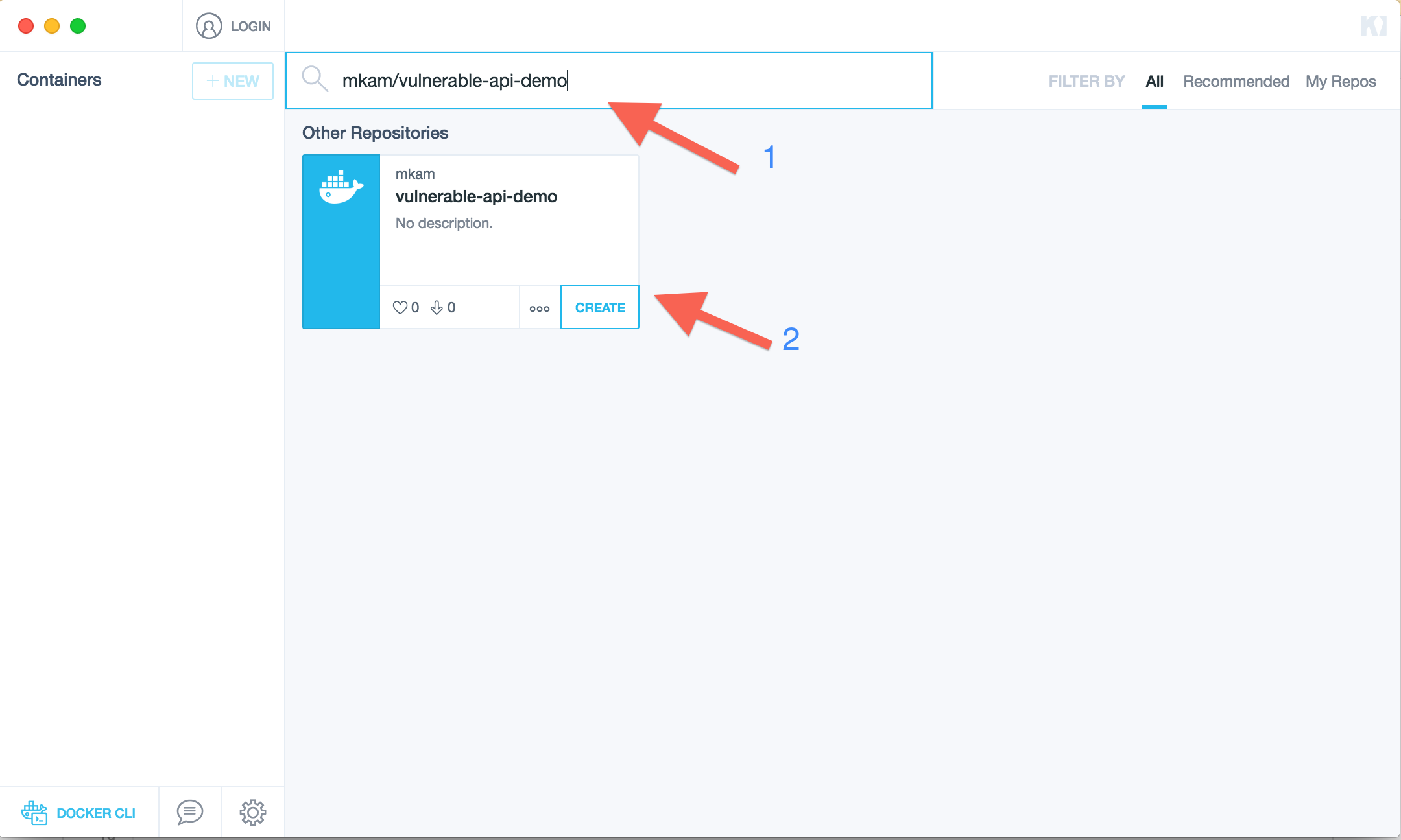 mkam/vulnerable-api-demoand click create