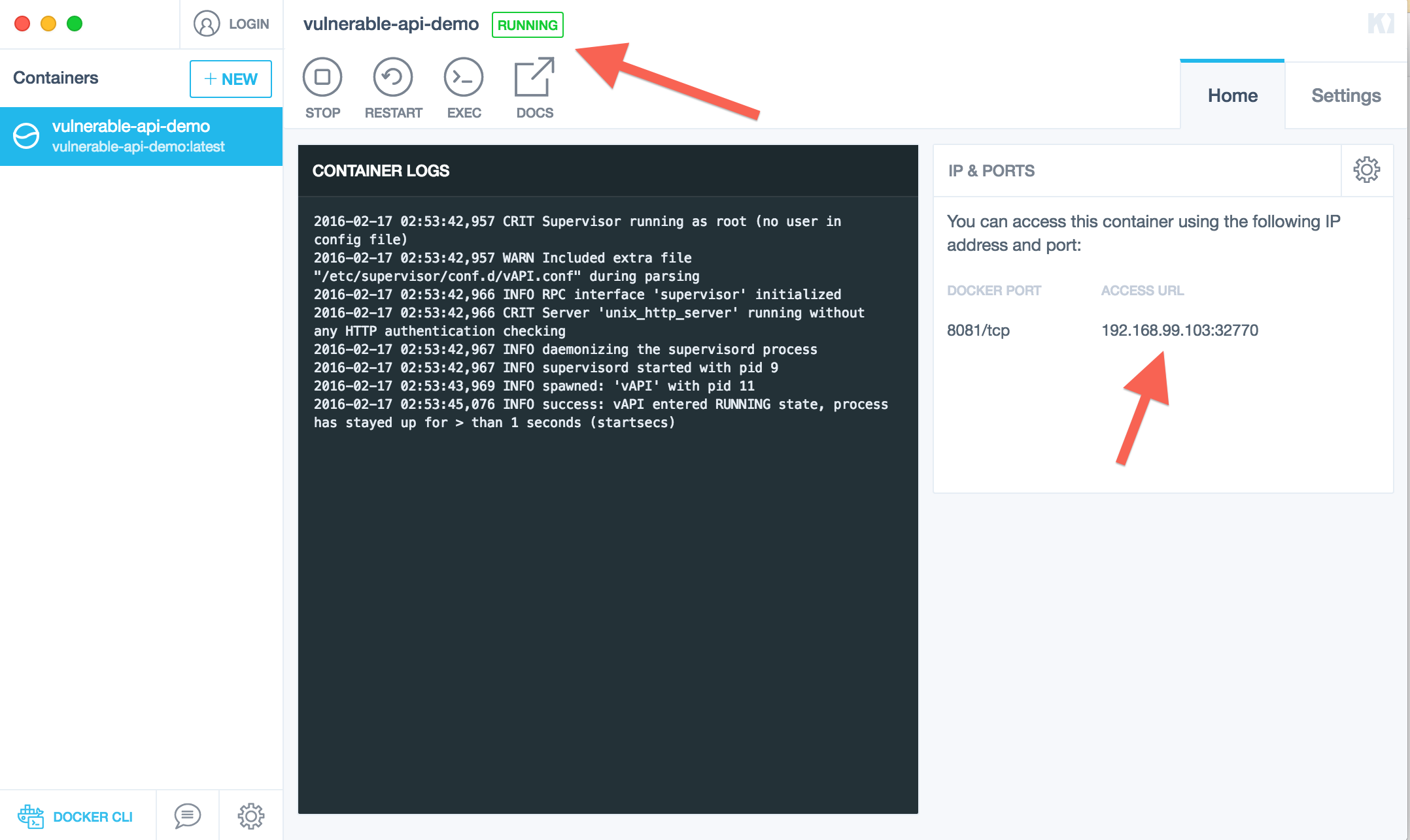 - Start up Kitematic