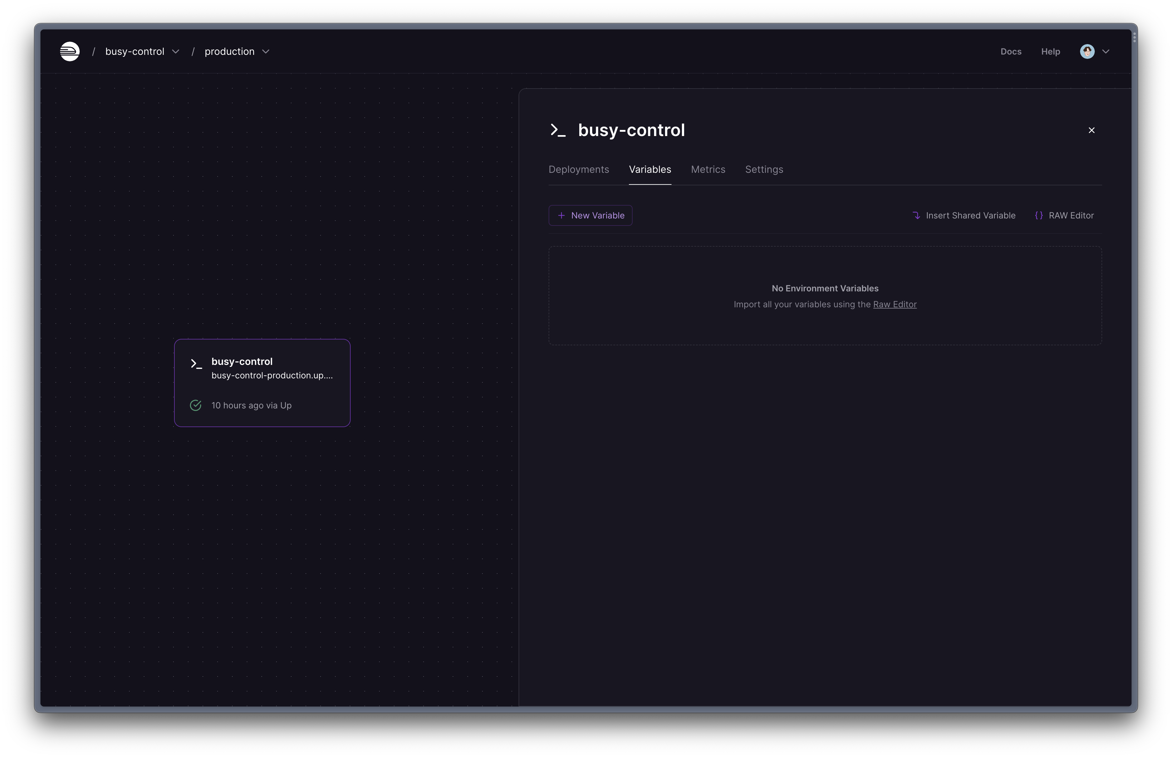 Similar to Render, you can configure your environment variables in the "Environment" tab.