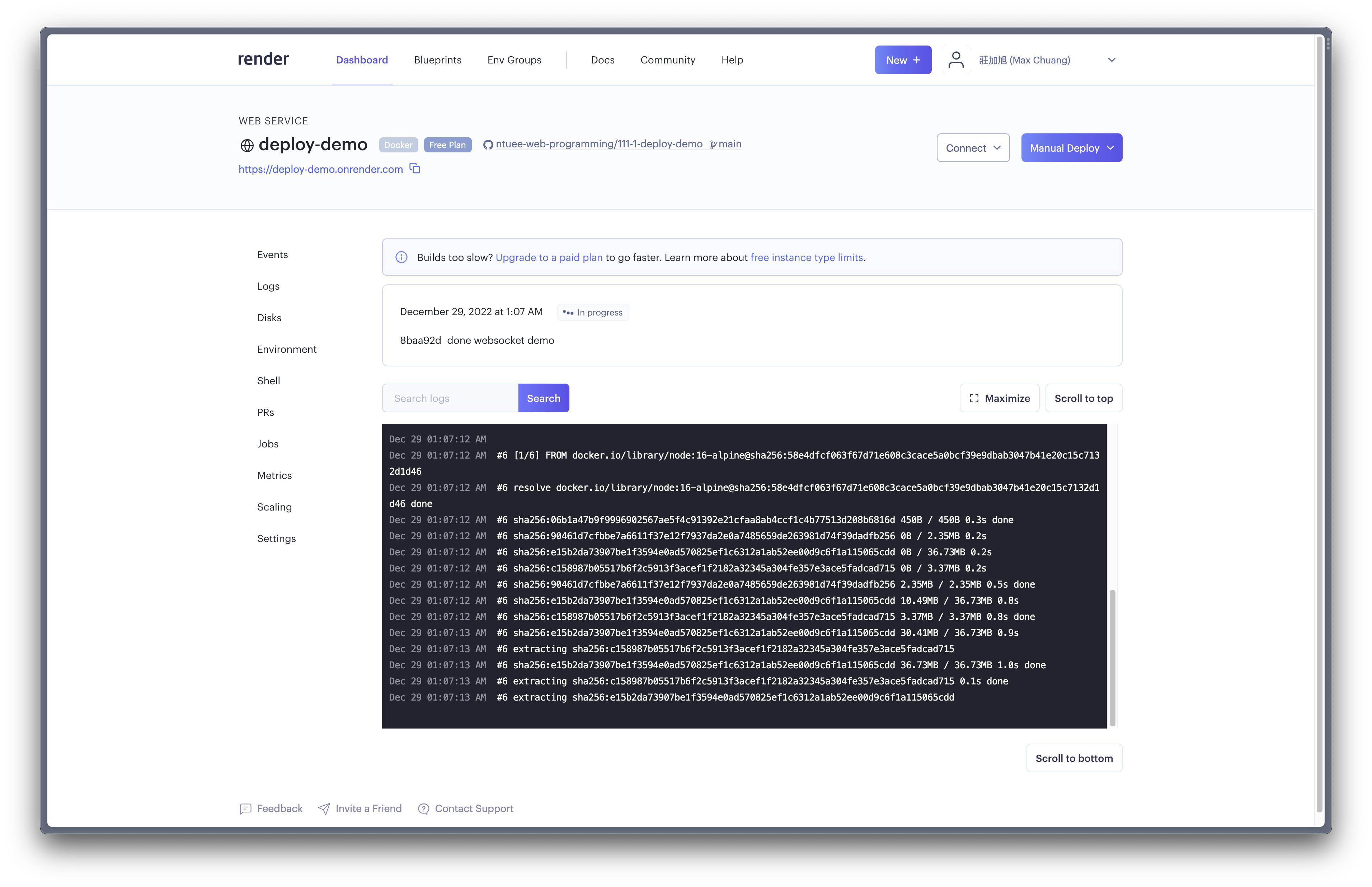 wait for the platform to build your docker image and deploy your service, this would take about 10 minutes