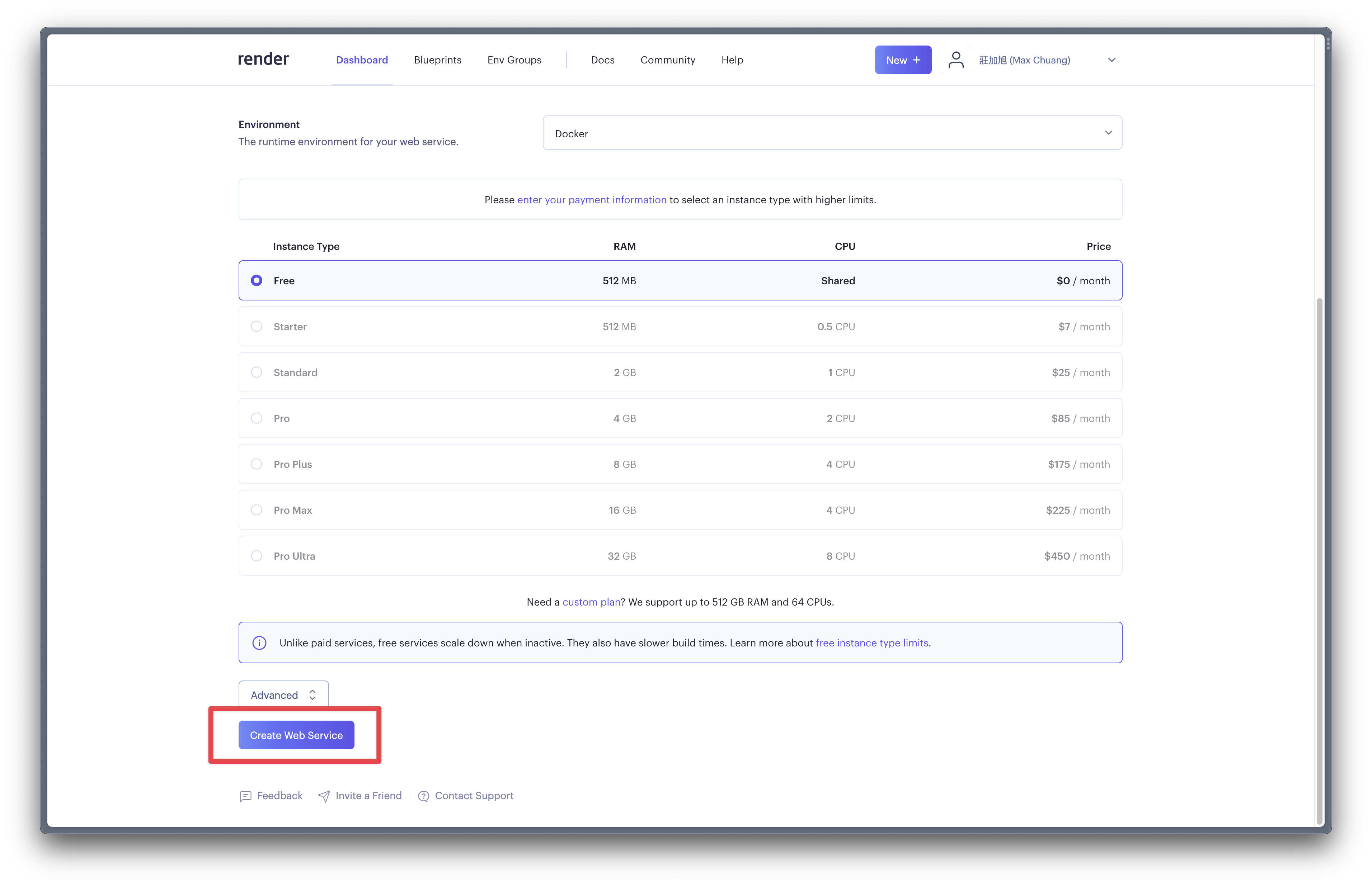 input a unique name for your webservice, and use the setting shown below. If you follow the steps above, this setting should work just fine.