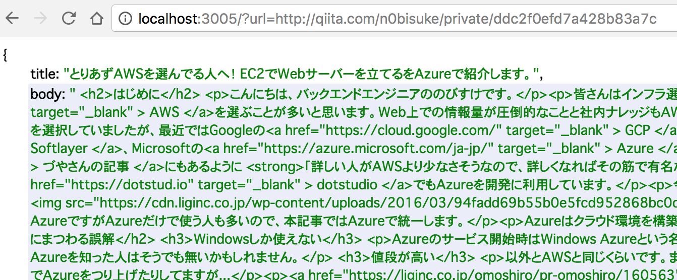 http://hogehoge.com:3005/url?=<ここにQiitaのURL> でブラウザアクセス