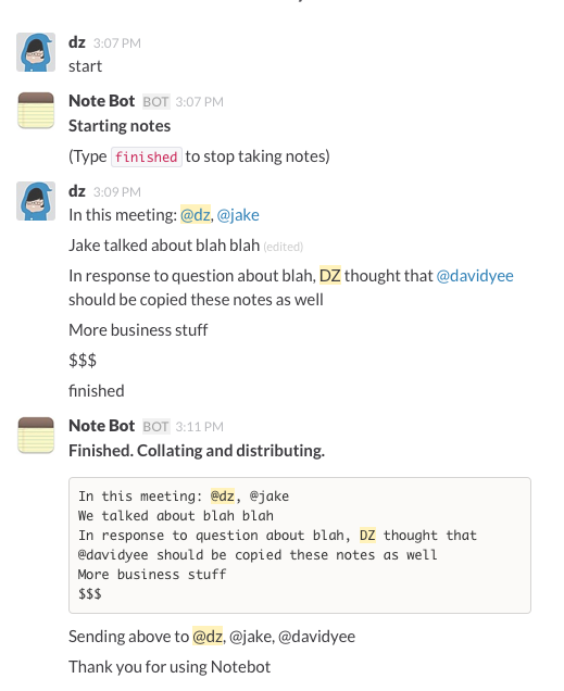 The bot just stores incoming meeting notes messages unencrypted into memory. Buyer beware.