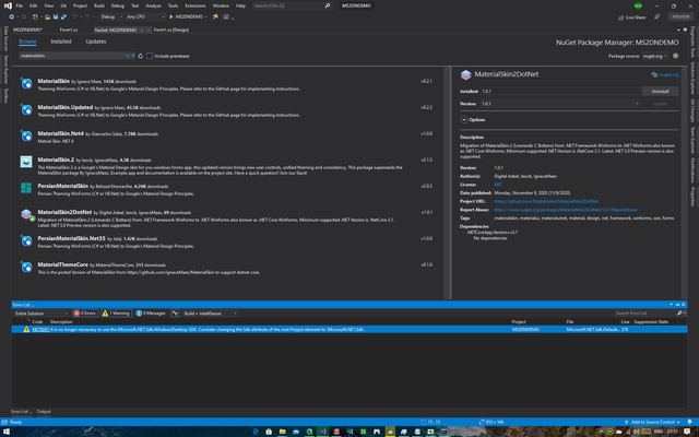 Or simply search for MaterialSkin2DotNet on the Nuget Package Manager inside Visual Studio
