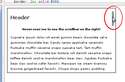 Small and quick implementation of a CSS-customizable Scrollbar for use in situations where a div with a fixed height contains content that overflows past its boundaries. This implementation is based off of the scrollbar designs found in various places on Facebook, GMail, and Trello.