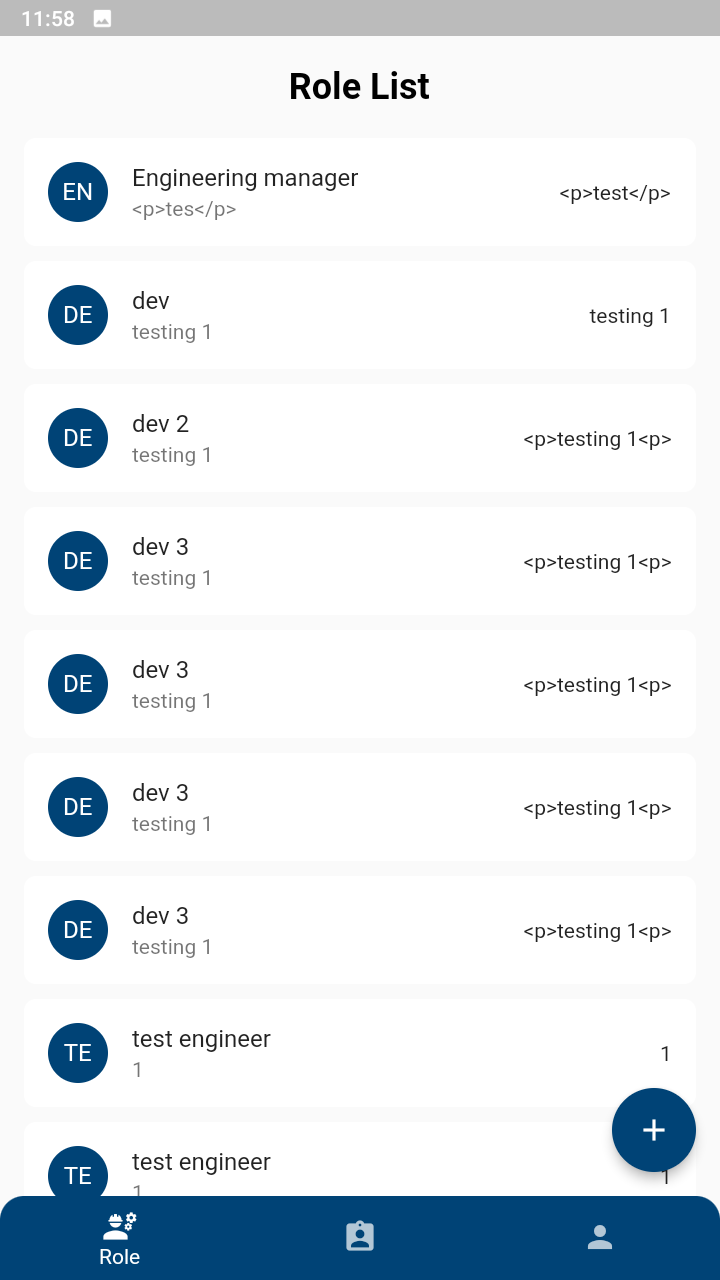 Aplikasi manajemen karyawan dan peran perusahaan. Anda dapat menggunakan akun media sosial untuk mendaftar/masuk kedalam aplikasi. Aplikasi ini juga mendukung pencarian user secara lokal. Atur SDM anda dengan tepat menggunakan aplikasi ini.