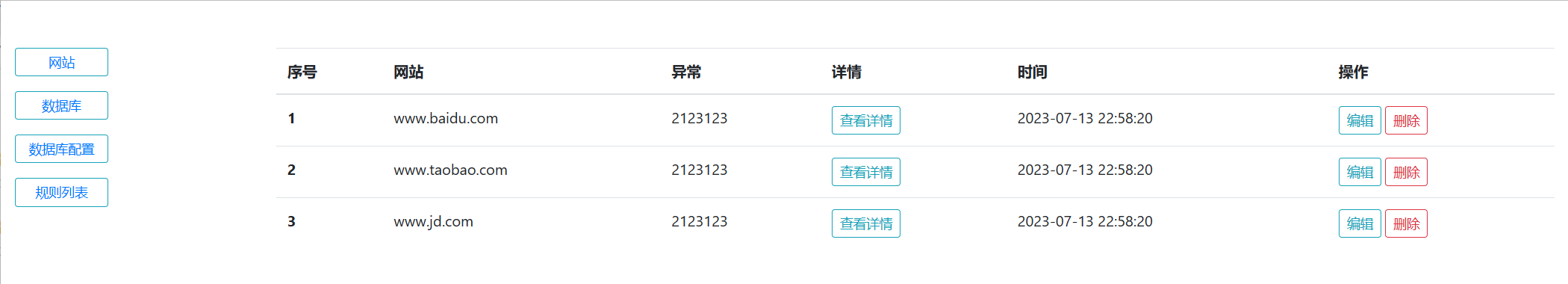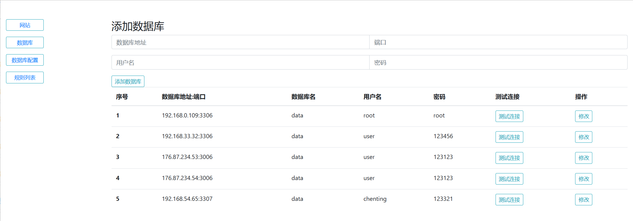 在此处添加所要检测的数据库地址,添加完成后会根据规则列表去检索符合规则的数据,检查结果在菜单“数据库”中查看