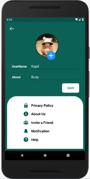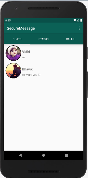 - Your private chats will be encrypted on the sender side with the help of AES algorithm and this key will be encrypted with RSA algorithm.