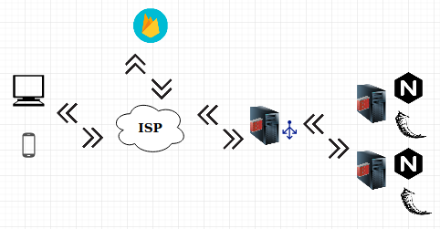 The besafe structure is based on two servers with nginx and flask to handle all the content, and one loadbalancer to distribute the load of requests. Firebase is used for data storage on the client side and on the server side.